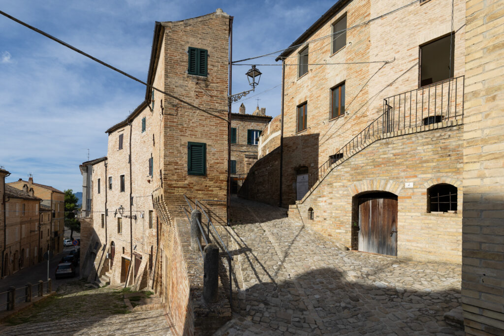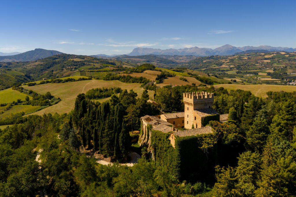 Oltre le mura, itinerari e percorsi ciclabili conducono tra campagne silenziose, edicole votive e fortificazioni come il Castello di Monte Varmine – uno dei meglio conservati delle Marche, con torre merlata alta 35 metri – e luoghi spirituali come l’Abbazia romanica di Sant’Angelo in Piano, antica sede benedettina e meta di pellegrinaggi.